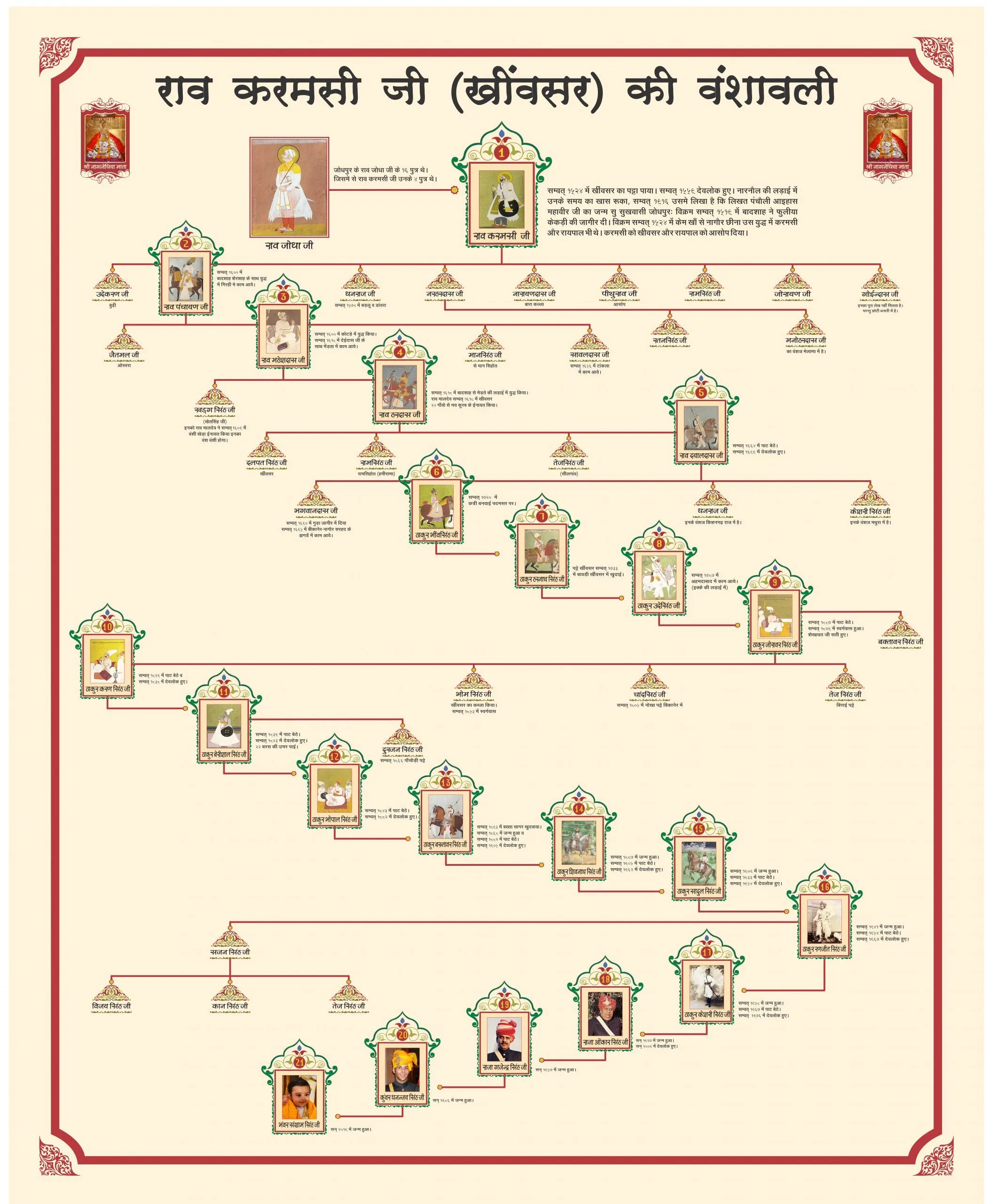 Back in the day, the mighty Rathores commanded their unparalleled wartime legacies against Sher Shah Suri, Kamran Mirza (Mughal Emperor Humayun’s brother) and successive Mughal invasions thereafter, their Karamsoth brethren played an instrumental role as harbingers of peace, negotiation and strategic alliances. Karamsiji’s 20 generations produce valiant wartime heroes and prudent statesmen, visionaries, and notable entrepreneurs. For instance, Khimsar’s 9th scion,  Zorawar Singhji, spent his entire life far away from home, negotiating peace between Jodhpur and Bikaner. Not only was he the leading contingent behind bringing Godwar into Marwar’s map, but he was also amongst the most respected Rajputs by the formidable Maratha army. History repeated itself time and again, requiring Khimsar to intervene for the cause of peace between frequently warring brethren. Even in the darker hours of colonial eclipse, Raja Kesri Singhji was a prominent contestant for Khimsar against all odds. So deep was his love for his motherland that he relinquished his sovereignty over Khimsar for it to be passed on to his still minor son Onkar Singhji, who was a few months shy of turning 18 at the time. Upon growing up, Raja Onkar Singhji served Rajasthan as a prominent diplomat and statesman, only to be furthered by his son. Raja Gajendra Singhji’s political sagas need no prior introduction. True to that legacy, Dhananjai Singh is a bright businessman orator and stands amongst India’s leading connoisseurs of vintage automobiles.